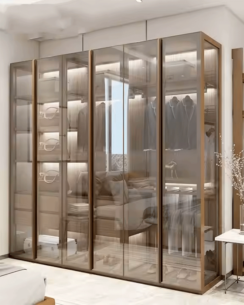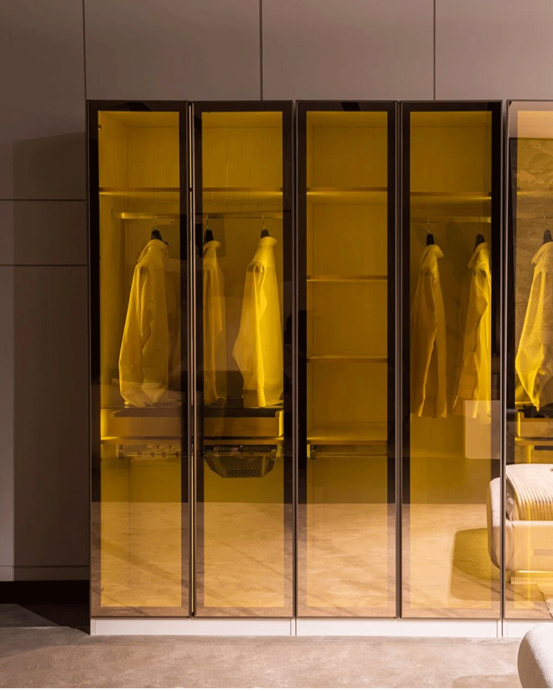 Cam dolaplar, evlerde, ofislerde, mağazalarda ve otellerde şık depolama çözümü olarak kullanılabilir.